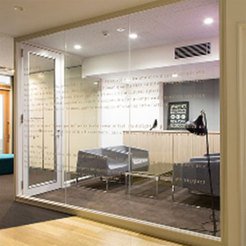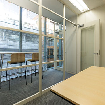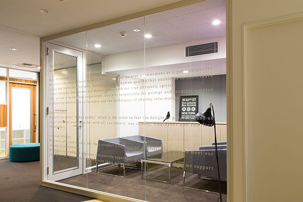 解放感が感じられて、スタッフ間のコミュニケーションが図りやすいスチールフレームの”ガラス張り”の明るいオフィス。