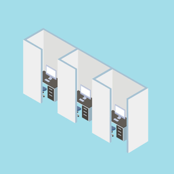 新型コロナウイルスの感染予防にもなる上に社員の集中力が上がり、業務効率が高くなったレイアウトとなります。