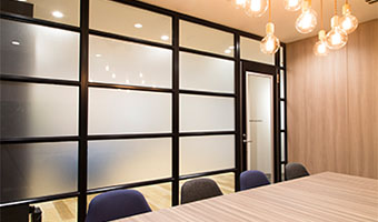 国産の品質に優れたパーテーションですが、設計・施工を自社内製化することにより通常の内装業者と比べて大幅なコストカットを実現しました。スペースや施工内容にもよりますが、ベーシックなアルミパーテーションであれば、お打ち合わせ日時を含めておおよそ1週間で会議室やエントランスの施工が可能です。